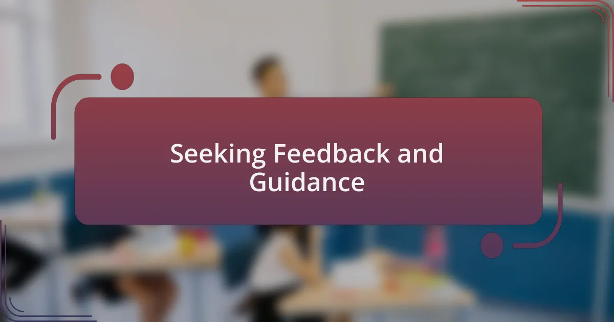 Seeking feedback and guidance can truly transform your academic journey, especially in mathematics, where clarity is crucial. I vividly remember approaching my calculus professor during office hours to discuss my understanding of derivatives. Instead of merely correcting my mistakes, he guided me through thought-provoking questions, prompting me to rethink my approach. This process not only deepened my comprehension but also empowered me to tackle similar problems with newfound confidence.